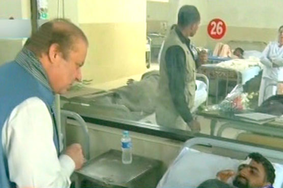 نوابشاہ(ڈیلی پاکستان آن لائن)وزیراعظم میاں نواز شریف زخمیوں کی عیادت کیلئے نوابشاہ پہنچے اور آرمی چیف جنرل قمر جاوید باجوہ کے ہمراہ پیپلز ہسپتال نوابشاہ میں سیہون دھماکے کے زخمیوں کی عیادت کی.